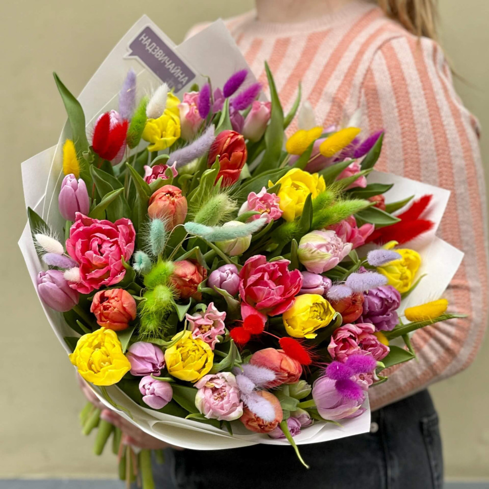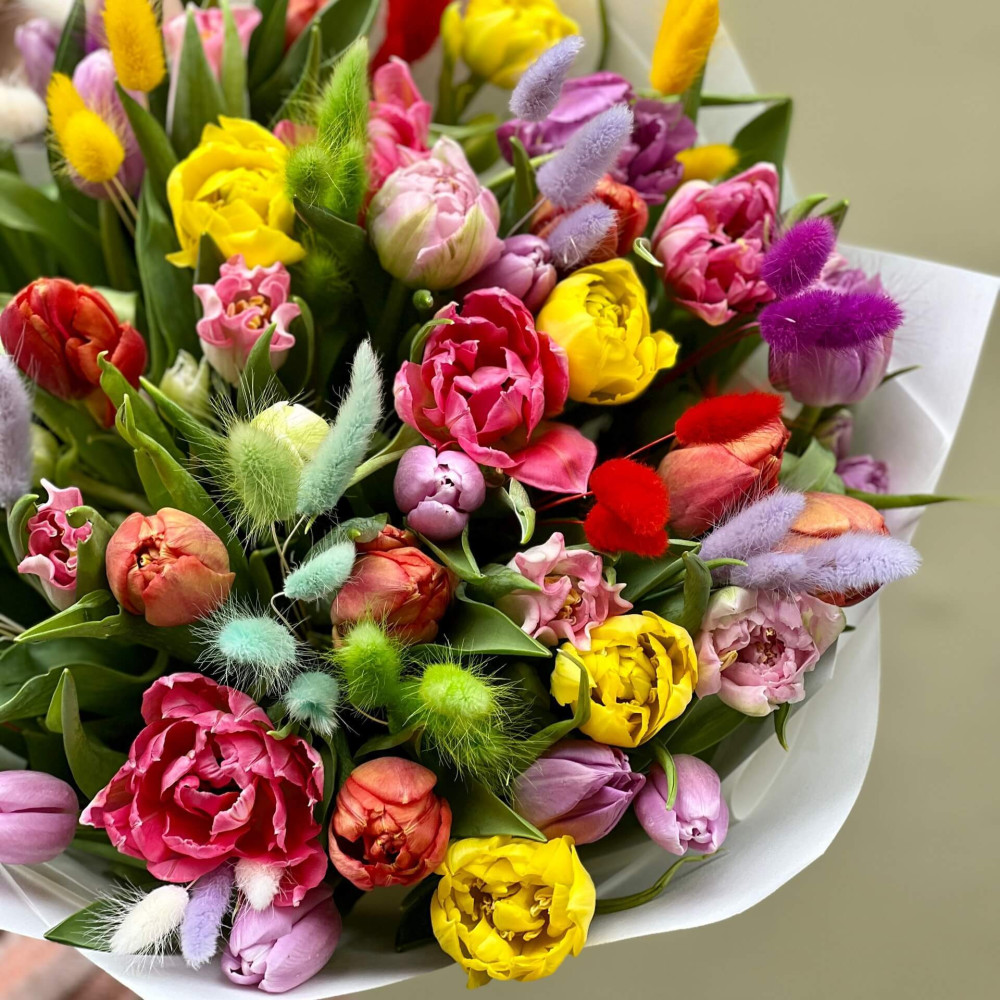 - Як замовити 41 тюльпан у букеті «Морські камінчики»? ❯