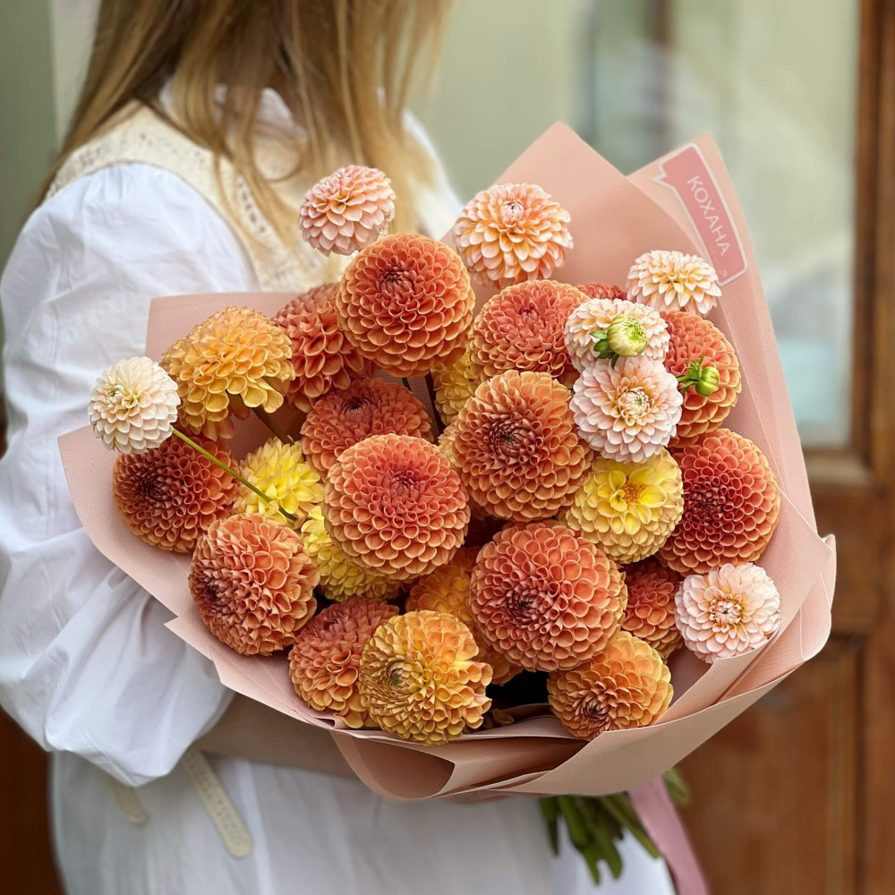 - Як замовити 41 жоржина у букеті «Медові жоржинки»? ❯