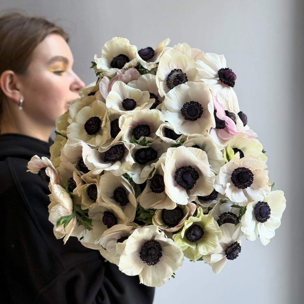 - Як замовити 45 білих анемонів у букеті «Вишуканість»? ❯