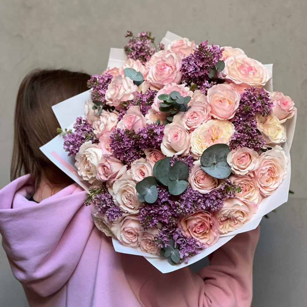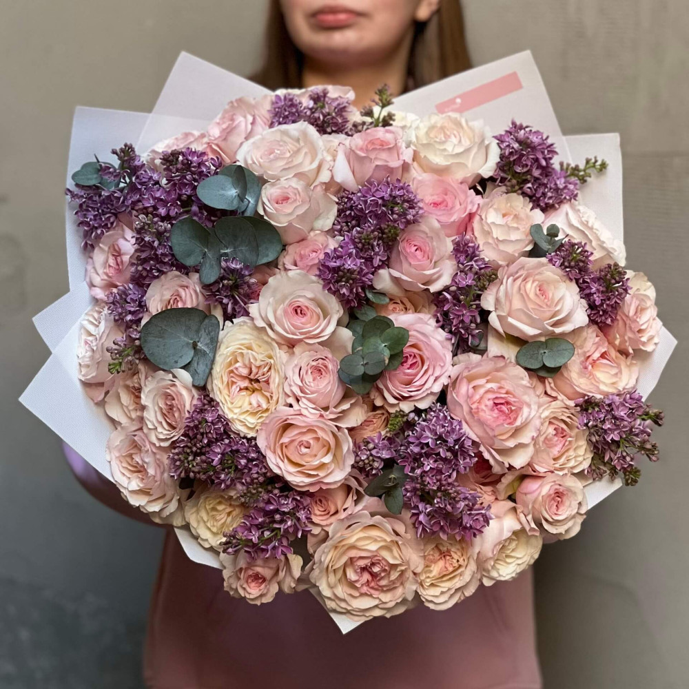 - Як замовити 45 неймовірних півонієвидних троянд Keira і бузок у букеті «Любов Принцеси»? ❯