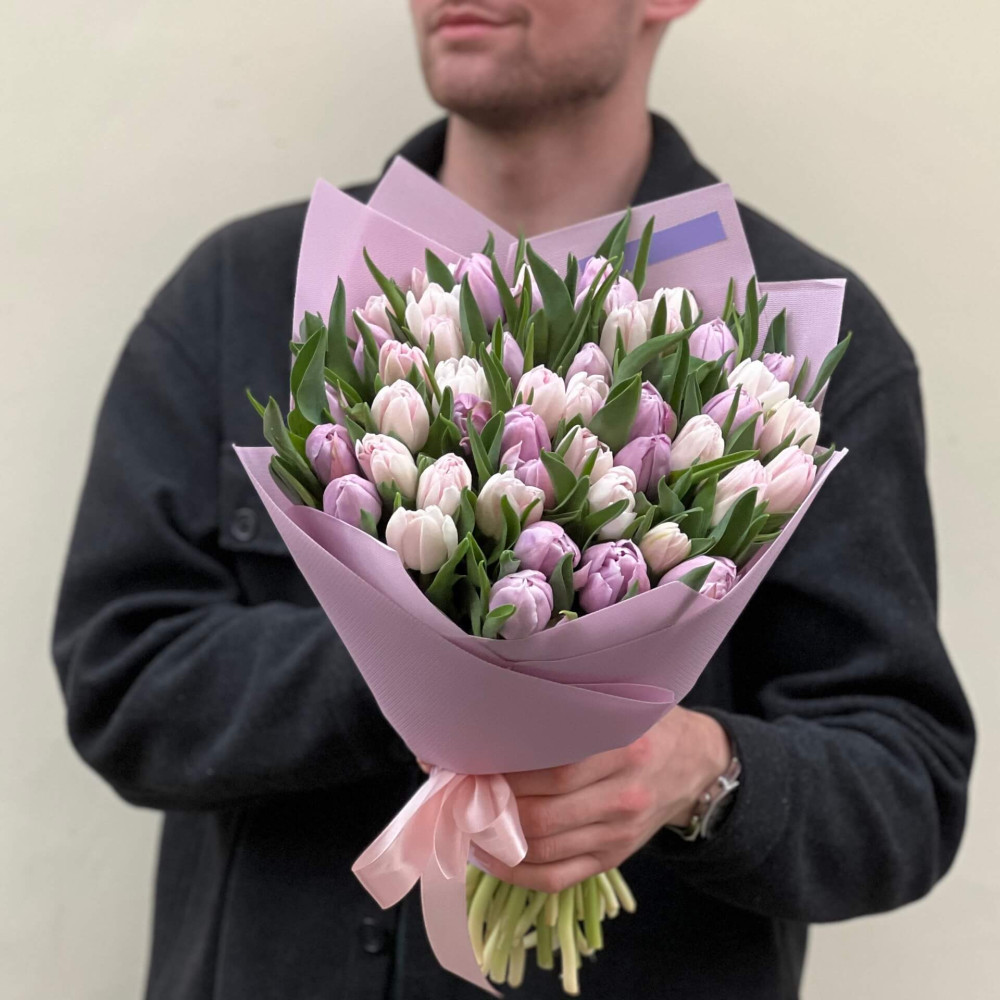- Як замовити 47 ніжних півонієвидних тюльпанів у букеті «Лавандові льодяники»? ❯