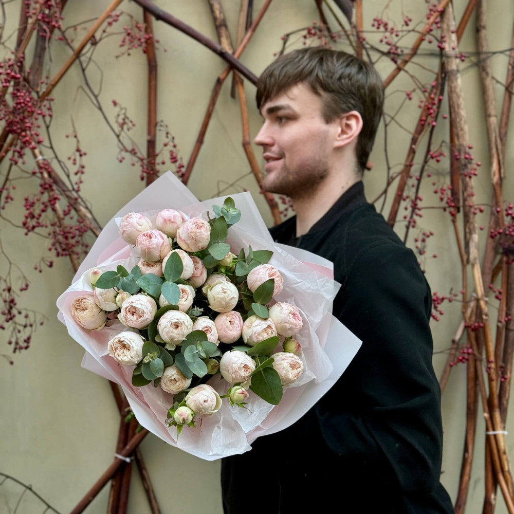 - Як замовити 5 гілок кущової піоновидної троянди Mansfield Park у букеті «Прояв ніжності»? ❯