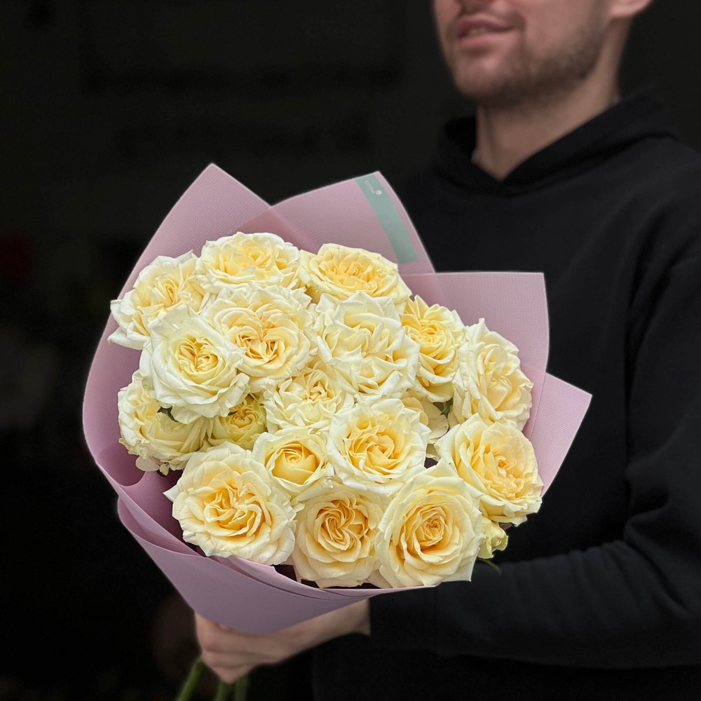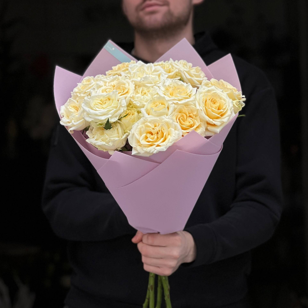 - Як замовити 5 гілок кущової півонієвидної троянди Candlelight у букеті «Тепле сяйво»? ❯