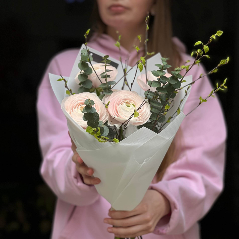 5 ніжних ранункулюсів Clooney Hanoi у букеті «Березневе пробудження»