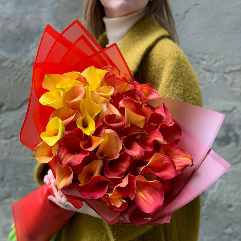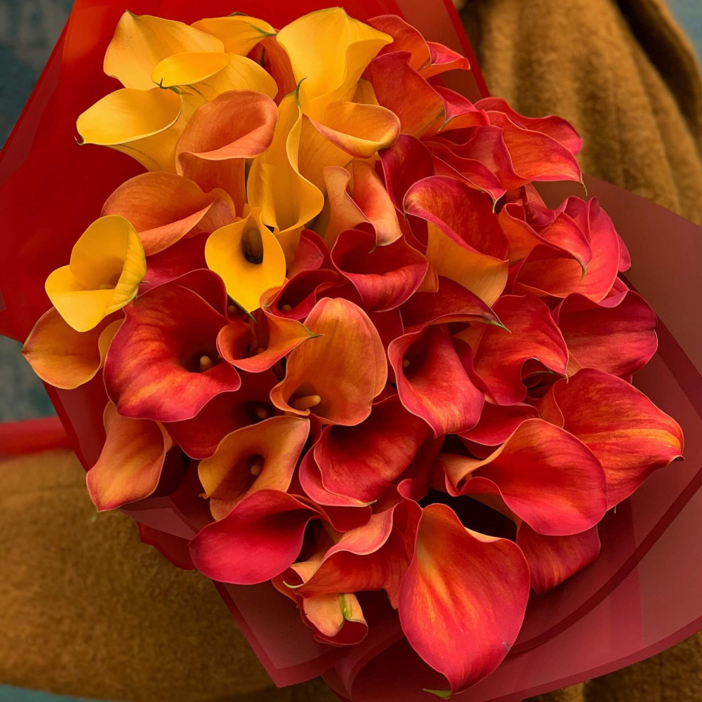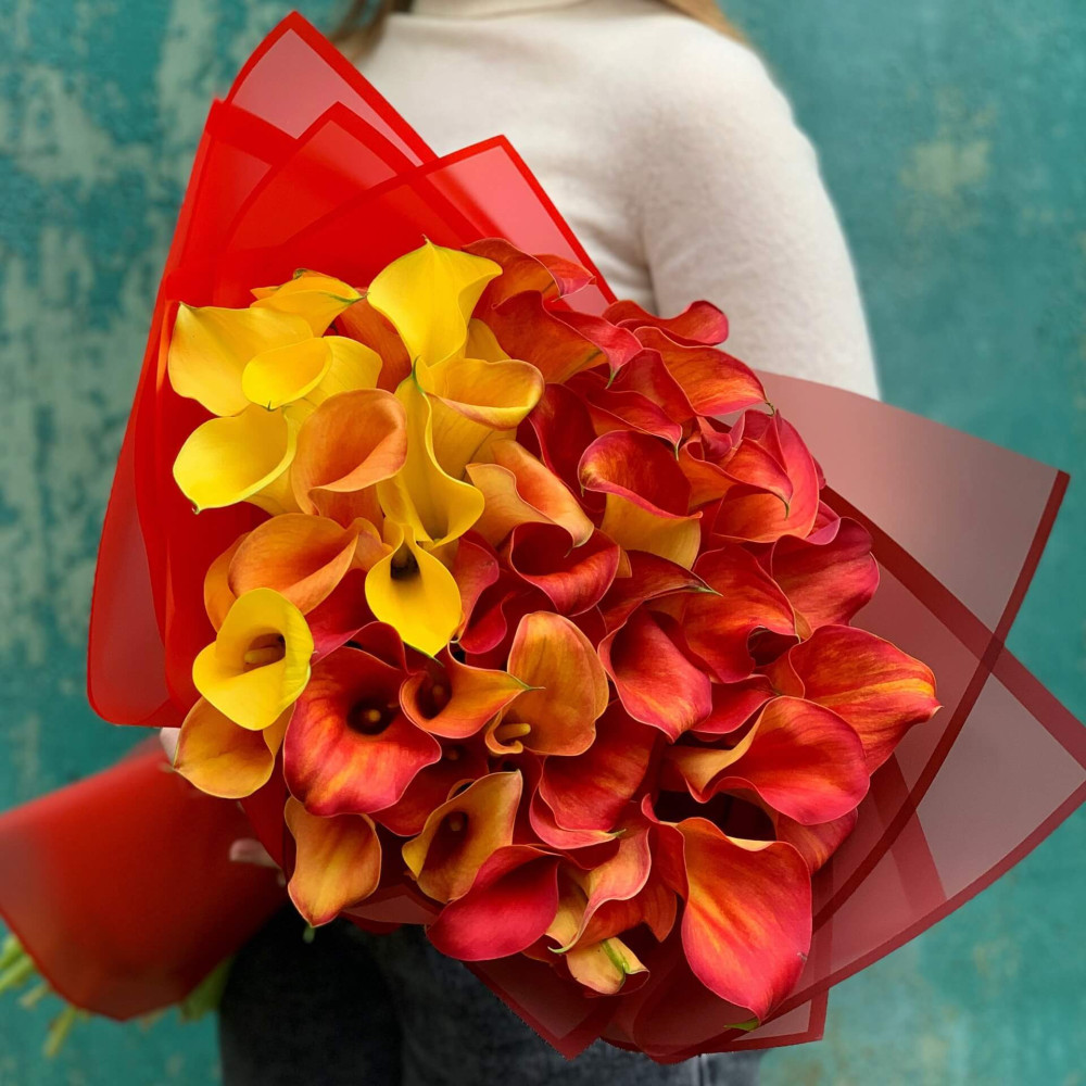 Кала доступна цілий рік, тому букети будуть без замін, або заміни квітів будуть мінімальними. Але краще уточніть наявність потрібного Вам сорту і кольору до оформлення замовлення Вашого ідеального букета з кал.