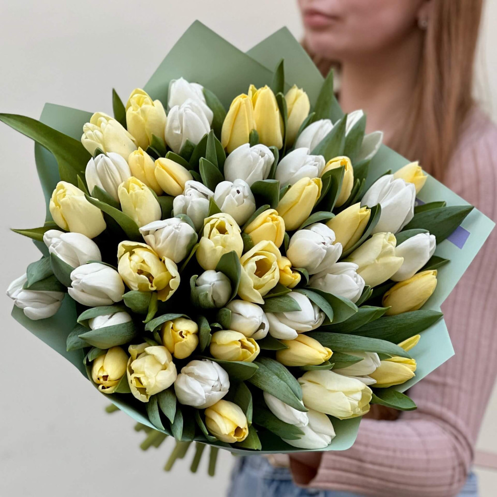 - Як замовити 53 класичні тюльпани у букеті «Лимонні цукерочки»? ❯