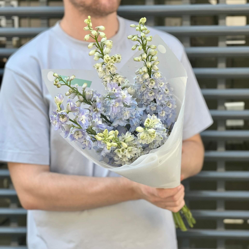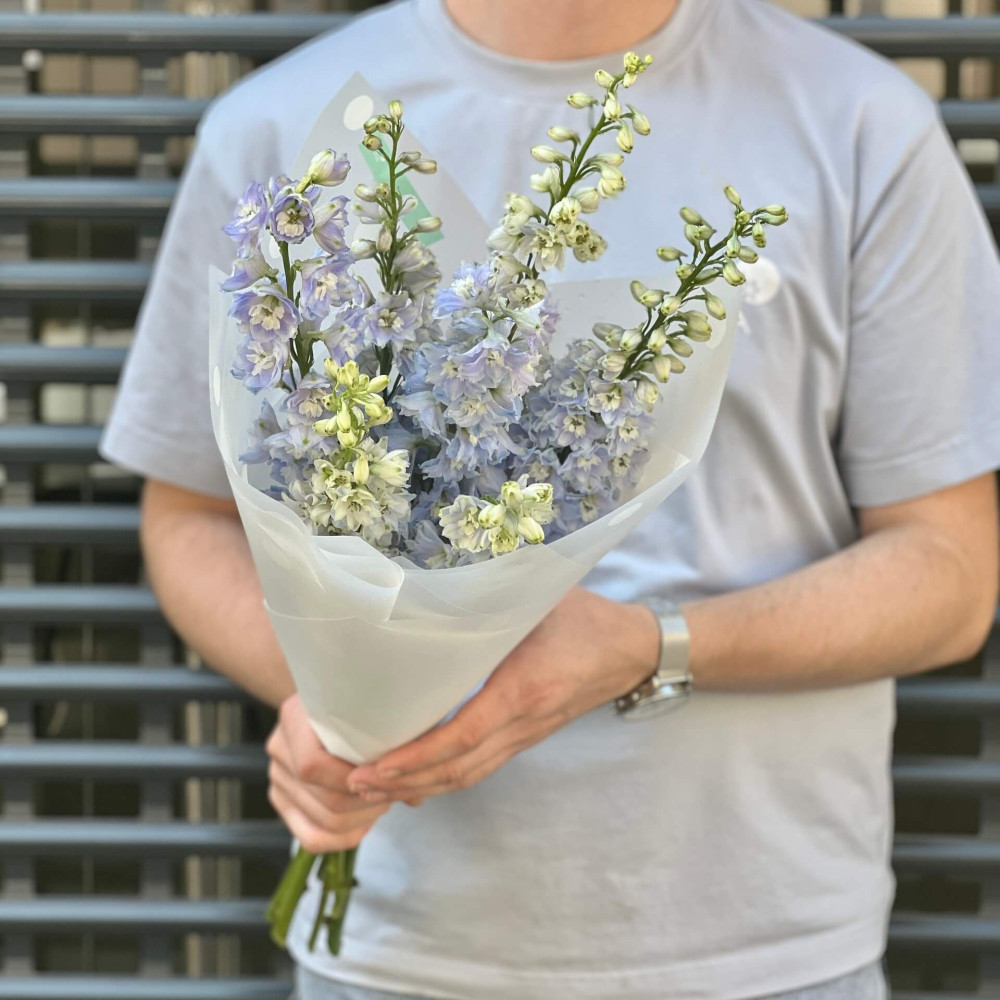 - Як замовити 7 дельфініумів у букеті «Блакитний промінчик»? ❯