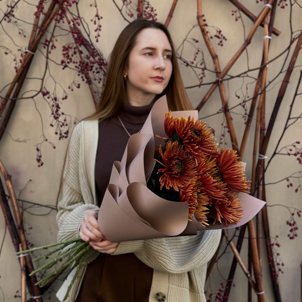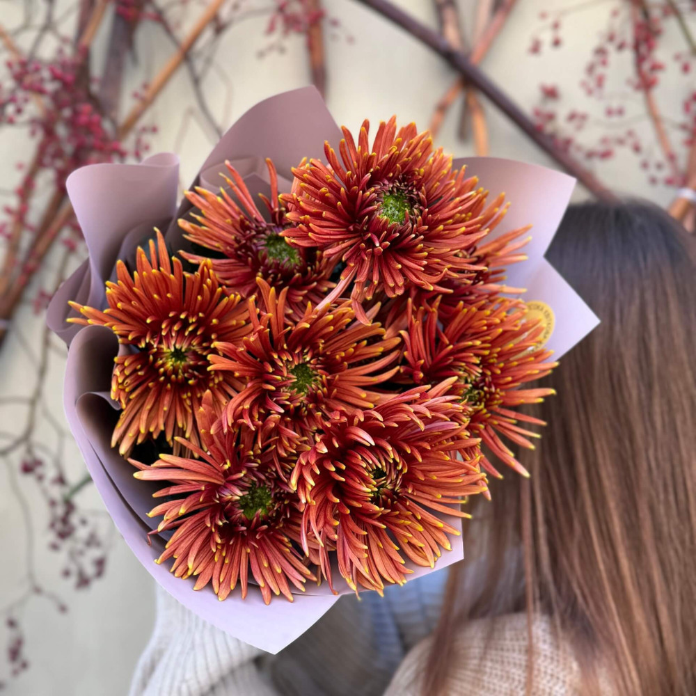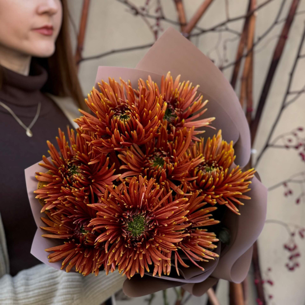 - Як замовити 9 хризантем Safina у букеті «Солодкий бурштин»? ❯