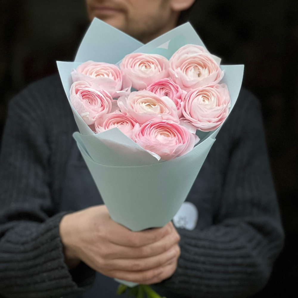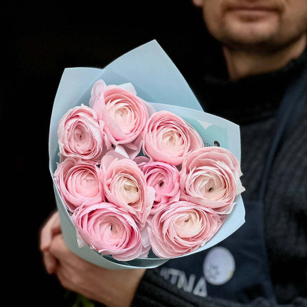 - Як замовити 9 ніжно-рожевих ранункулюсів Clooney Lady в букеті «Романтичне зізнання»? ❯
