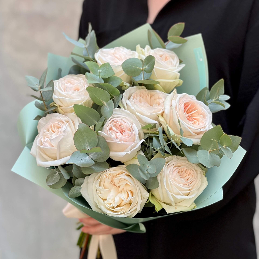 - Як замовити 9 піоновидних троянд White O'Hara у букеті «Ароматна Охара»? ❯