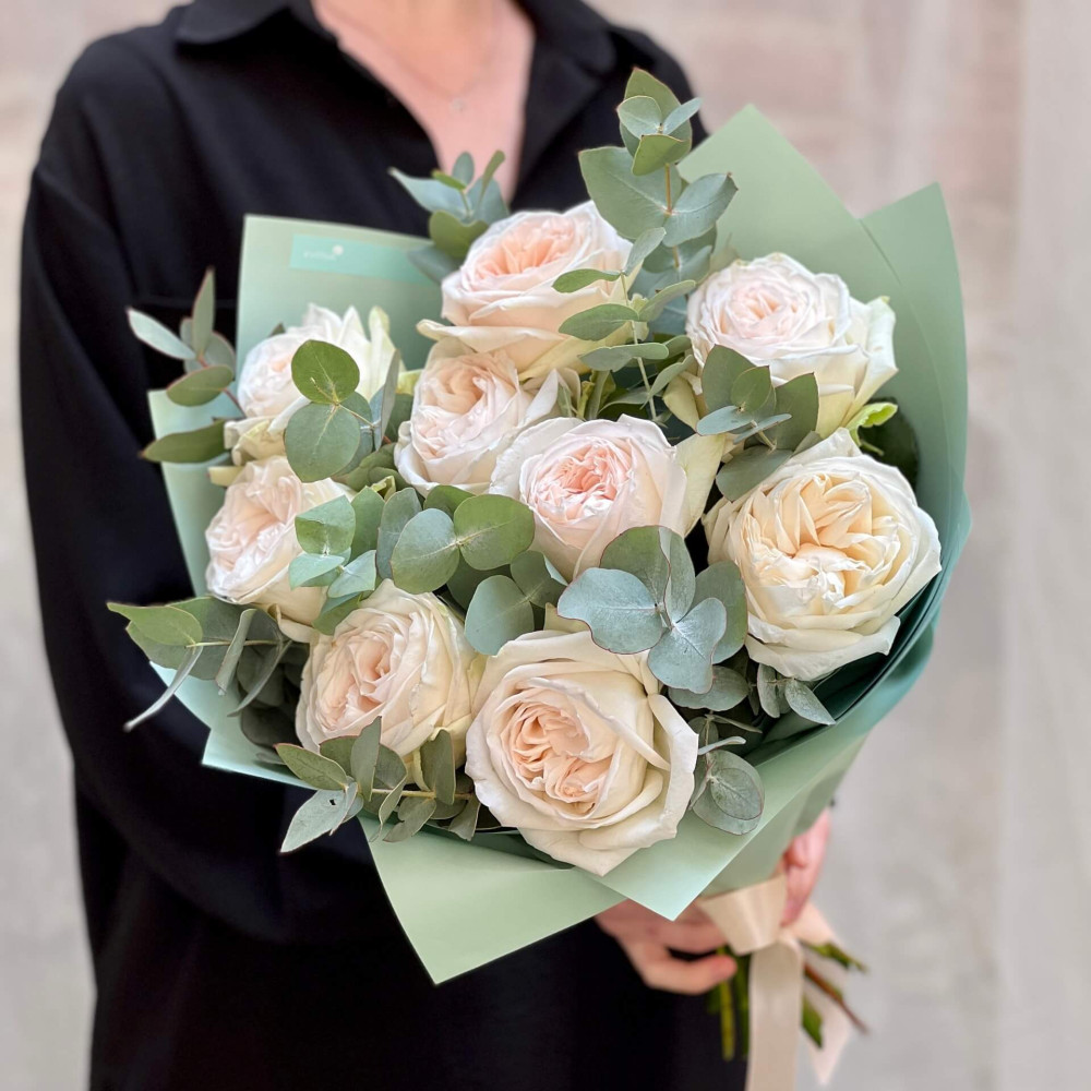 Квіти: Троянда піоновидна, Евкаліпт