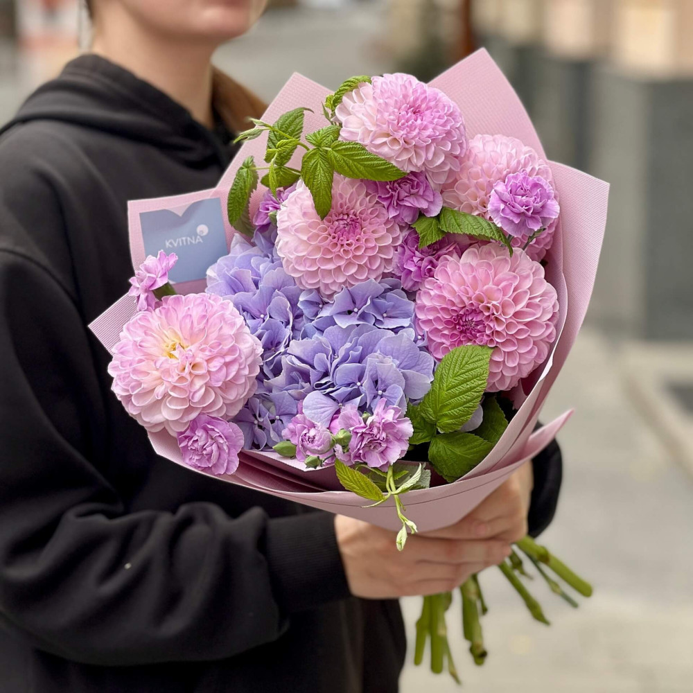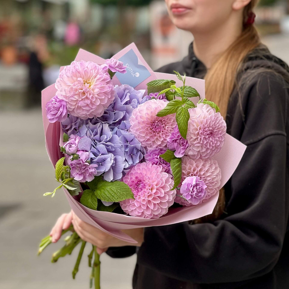 - Як замовити Акварельний букет з гортензією «Турмаліновий птах»? ❯