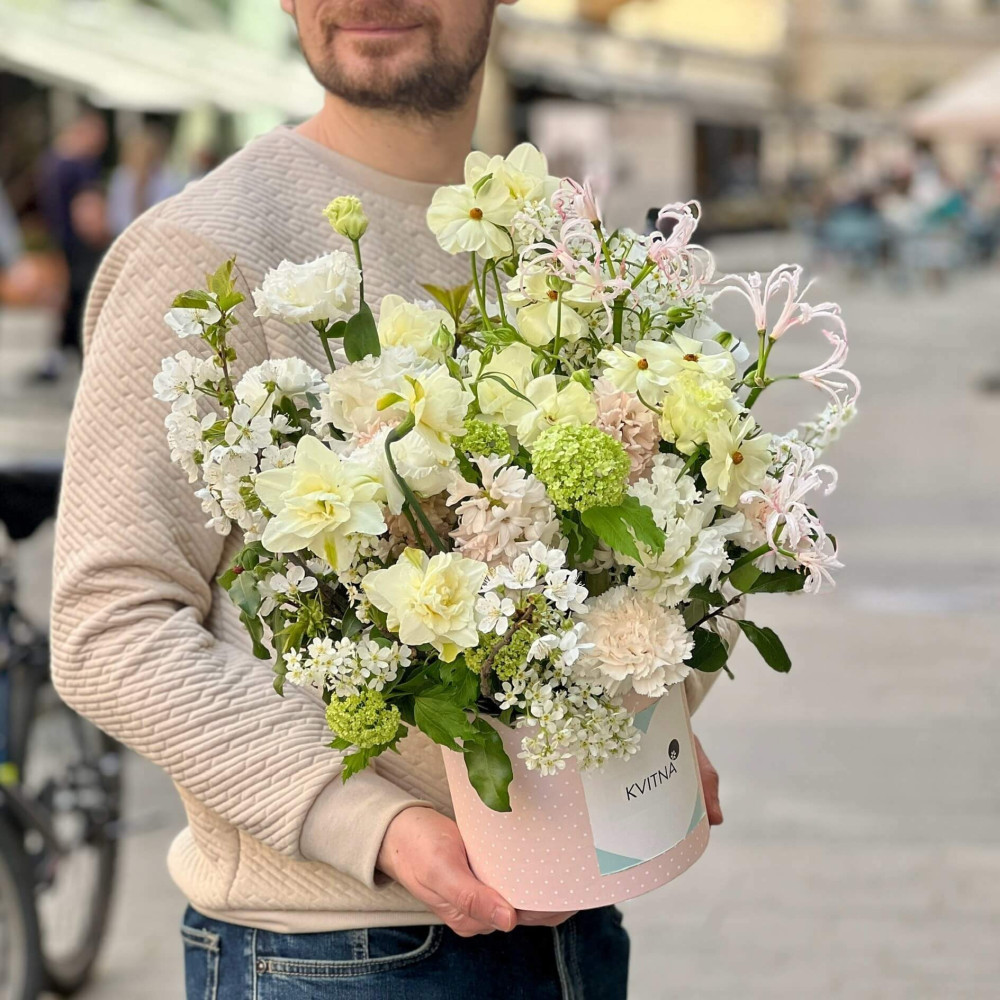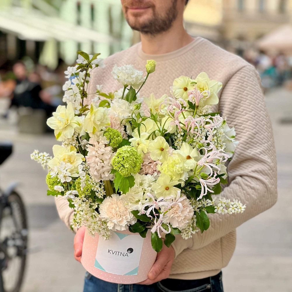 І це, до речі, зовсім не обов'язково плюси, це особливості, які потрібно розуміти. Тоді і вибір «де купити букет у Львові» зробити буде значно простіше.- Кожен букет Kvitna унікальний. Це означає, якщо Ви замовите у нас якийсь із букетів на сайті, то Ви не отримаєте точнісінько такий же. Деяких це бентежить, такі люди не хочуть «ризикувати», бажають «в точності, як на світлині». У «Квітна» кожен букет — це творчий пошук, це захоплення, злиття з квітами, образом одержувача і завданням. Так, ми можемо прийняти за вектор, зробити схожий букет, в тому ж стилі, кольоровій гамі, з тих самих квітів ... Але нам нудно робити за шаблоном. Адже букет, представлений на зображенні, робився для іншої людини, з іншого приводу, під інший настрій і натхнення. У Вас буде все по-іншому.