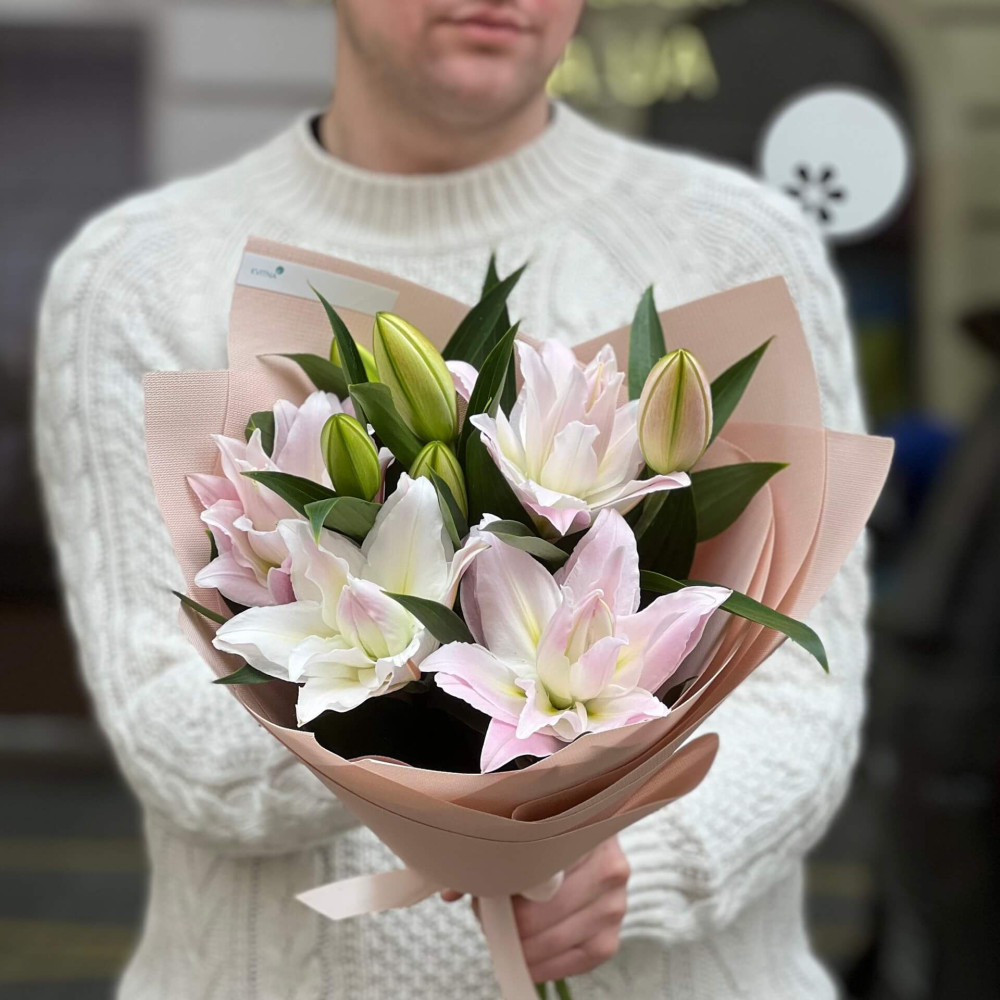 - Як замовити Ароматний букет із 3 лілій Sarah Bernhardt «Вишукана елегантність»? ❯
