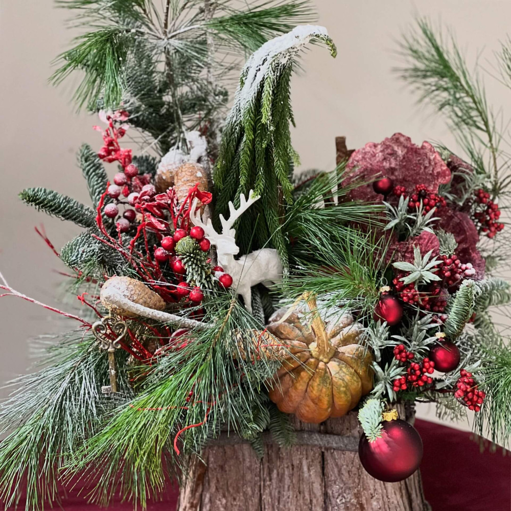 - Як замовити Атмосферна різдвяна композиція з додаванням натуральних матеріалів та хвої «В гостях у Геґріда»? ❯