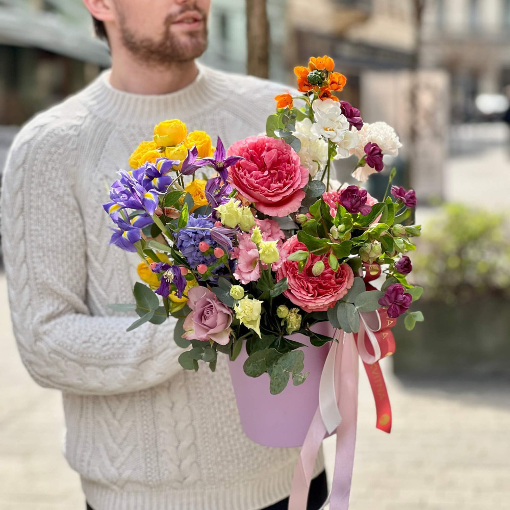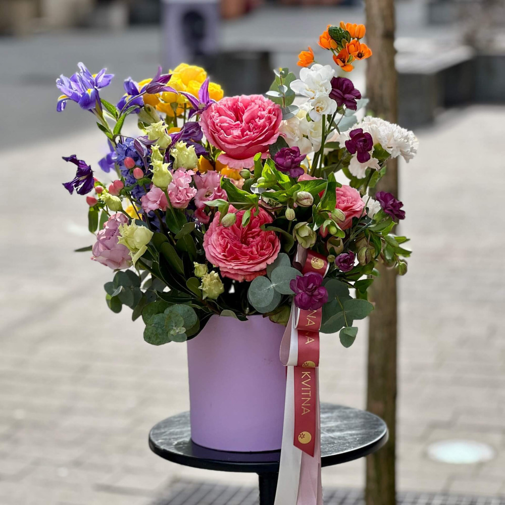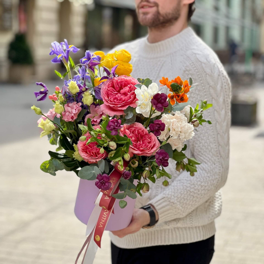 Нехай композиція (коробка, кошик, сніп) з квітами від Квітна тішить Вас якнайдовше!