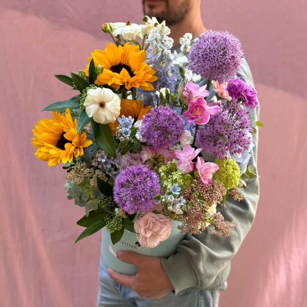 - Як замовити Барвиста коробочка з соняшниками та алліумом «Сонечко яскраве»? ❯