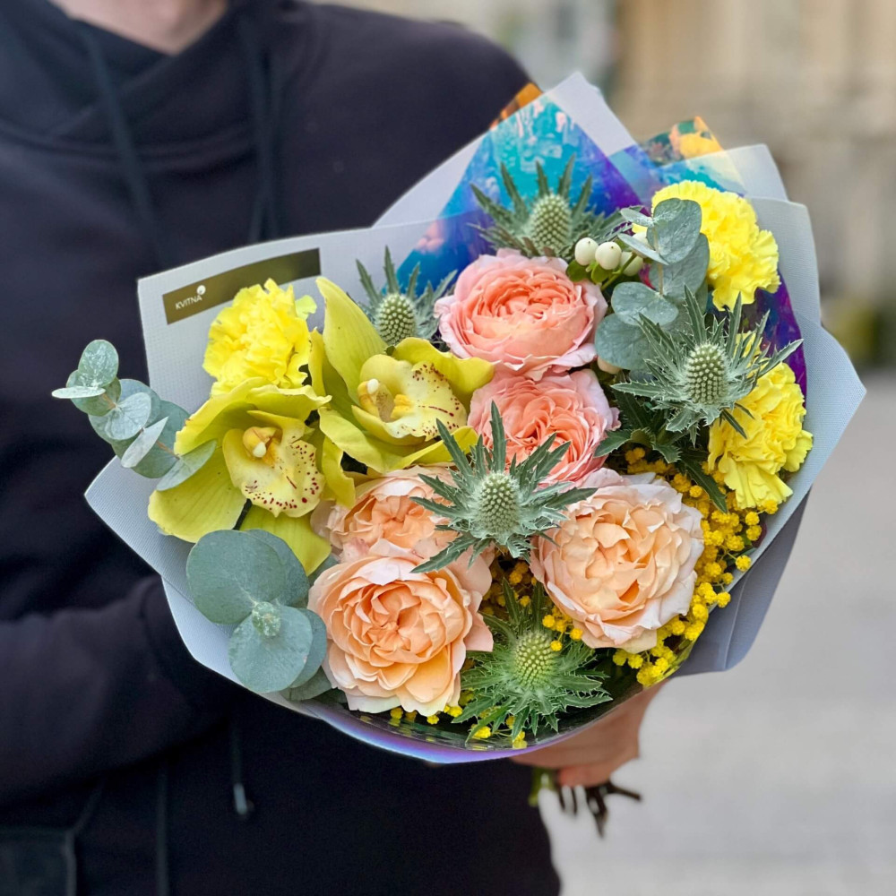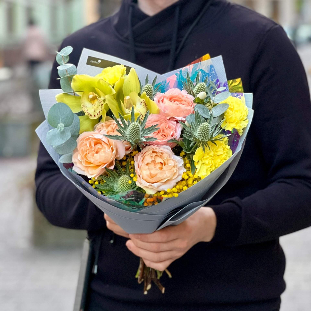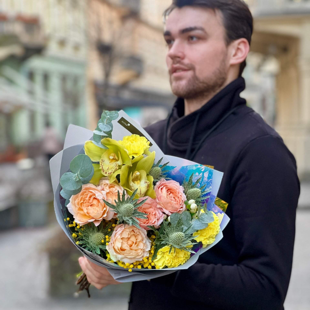 - Як замовити Барвистий букет з цимбідіумом «Лаймовий поцілунок»? ❯