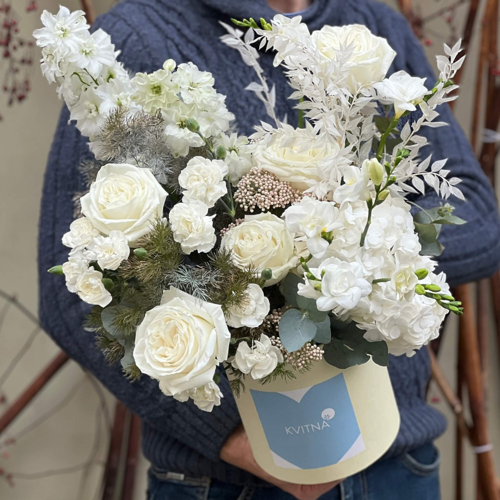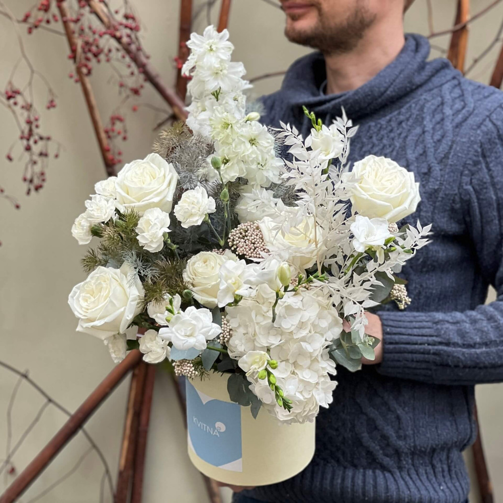 - Як замовити Біла делікатна композиція у коробці «Благородне срібло»? ❯