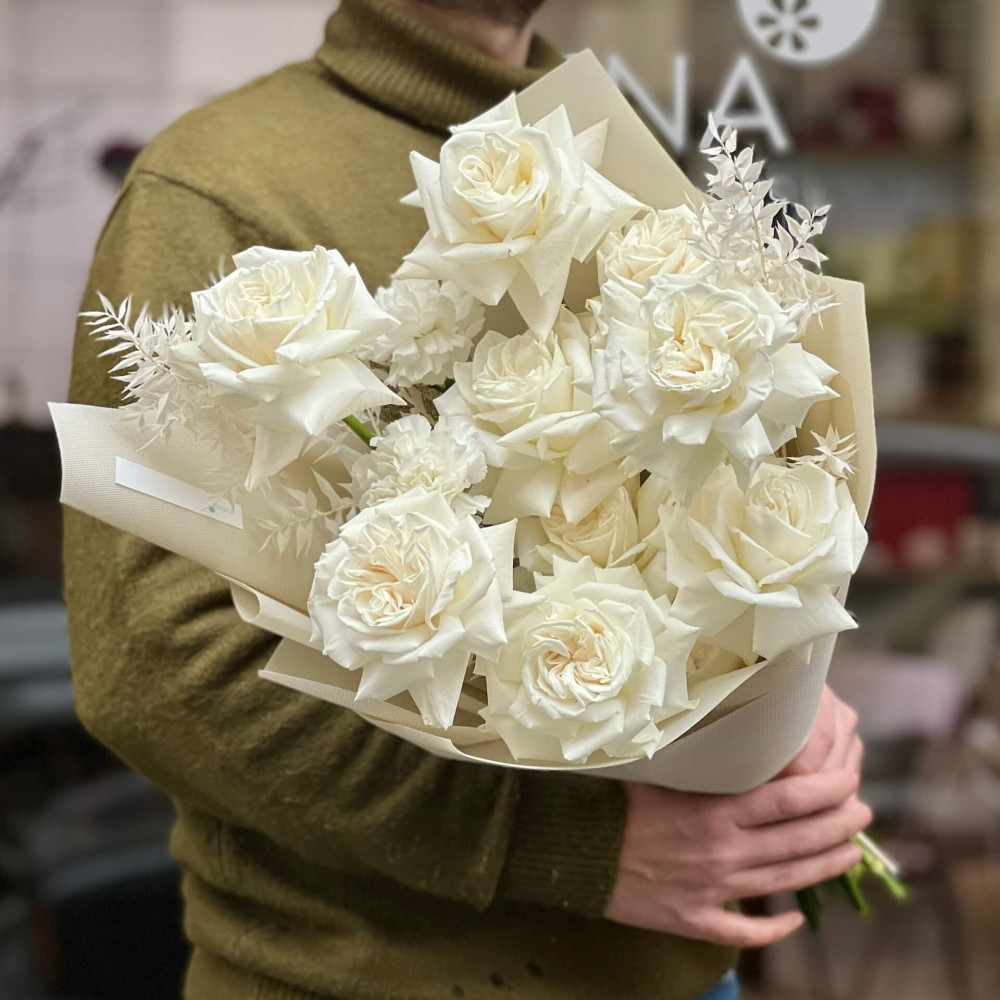 - Як замовити Білий букет з піоновидних троянд «Морозний поцілунок»? ❯
