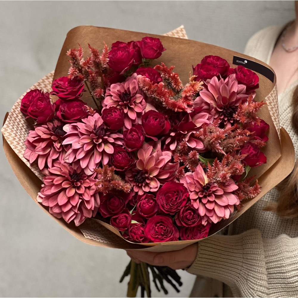 І це, до речі, зовсім не обов'язково плюси, це особливості, які потрібно розуміти. Тоді і вибір «де купити букет у Львові» зробити буде значно простіше.- Кожен букет Kvitna унікальний. Це означає, якщо Ви замовите у нас якийсь із букетів на сайті, то Ви не отримаєте точнісінько такий же. Деяких це бентежить, такі люди не хочуть «ризикувати», бажають «в точності, як на світлині». У «Квітна» кожен букет — це творчий пошук, це захоплення, злиття з квітами, образом одержувача і завданням. Так, ми можемо прийняти за вектор, зробити схожий букет, в тому ж стилі, кольоровій гамі, з тих самих квітів ... Але нам нудно робити за шаблоном. Адже букет, представлений на зображенні, робився для іншої людини, з іншого приводу, під інший настрій і натхнення. У Вас буде все по-іншому.