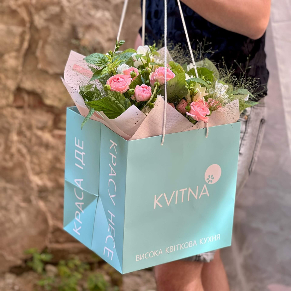 - Букети від Kvitna доставляються у фірмовому пакуванні, яке потрібно зняти при установці квітів у вазу. Не зрізайте стрічку, звʼязуючу букет, щоб зберегти його форму.