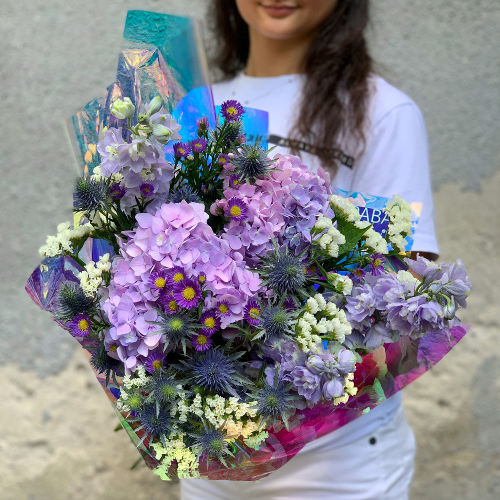 Квіти: Дельфініум, Кермек, Айстра, Ерінгіум, Гортензія