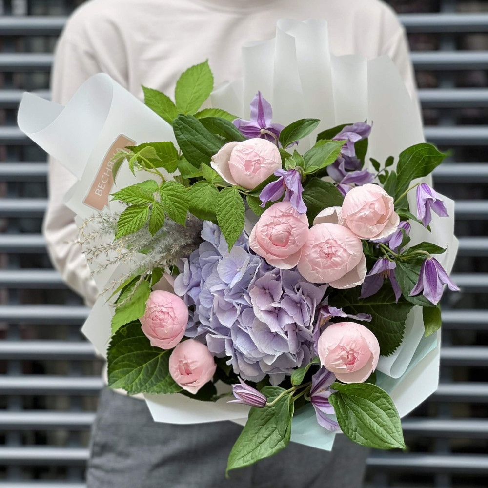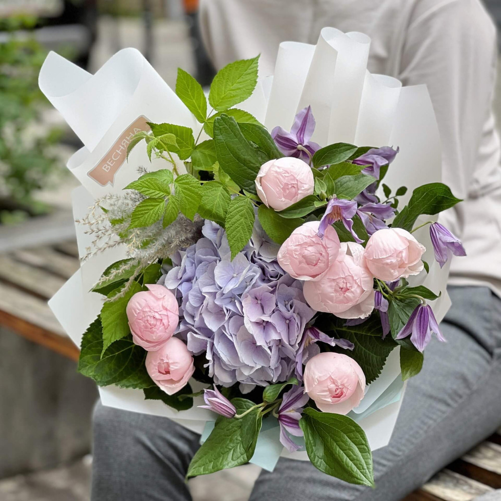 Квіти: Гортензія, Троянда піоновидна, Клематіс