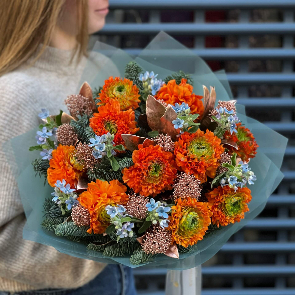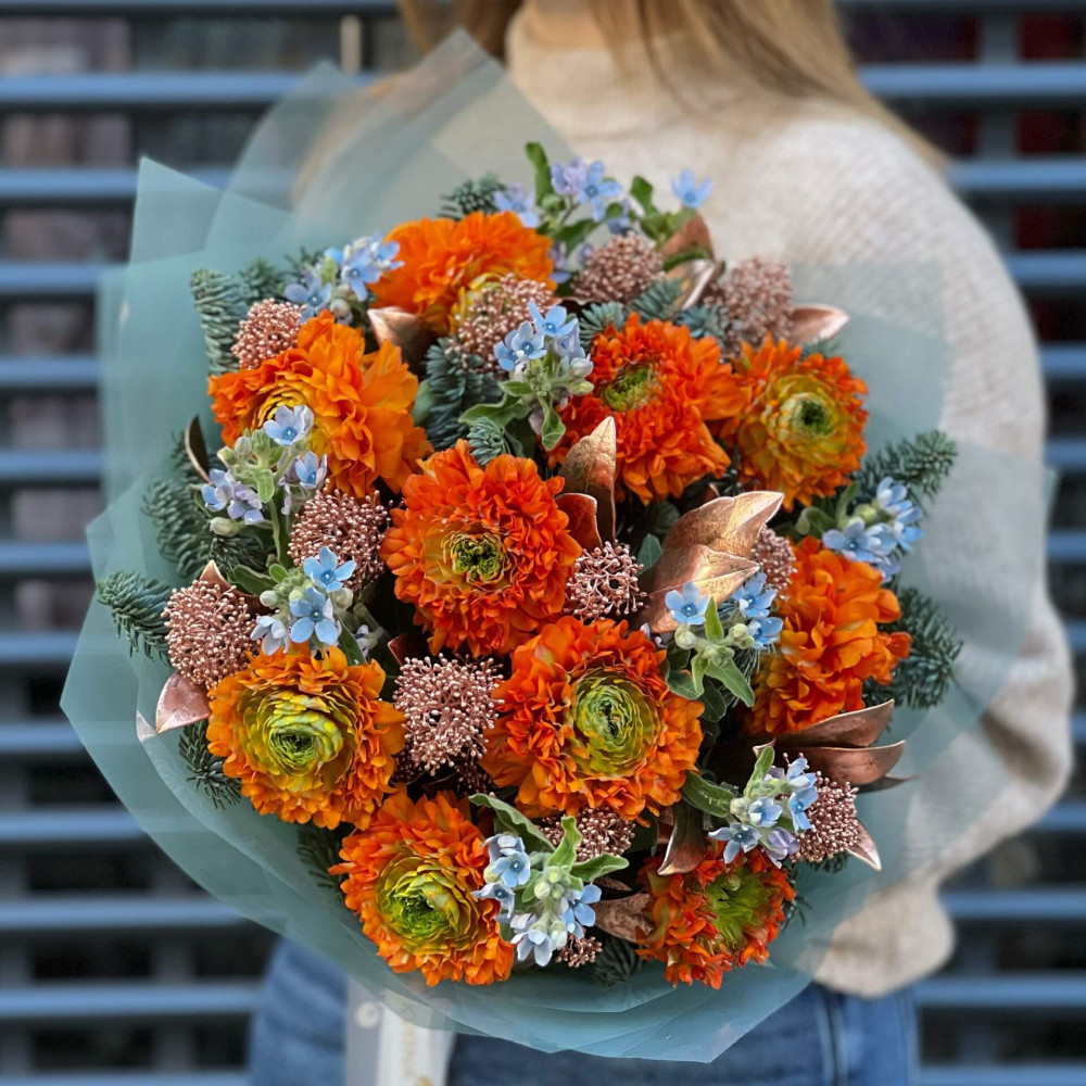 Полюбляєш апельсинки? Тоді мене створили спеціально для тебе. Адже ці величезні помаранчеві ранункулюси так сильно нагадують апельсини, що аж хочеться з'їсти.