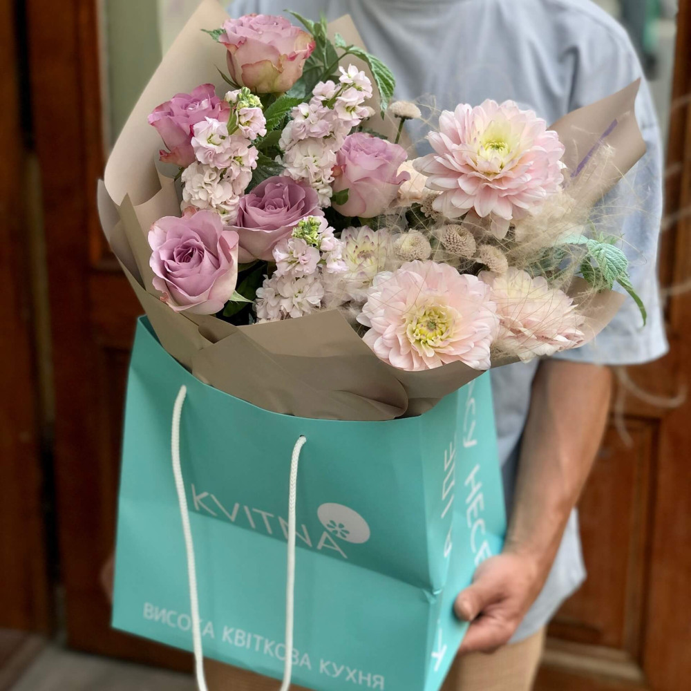 І це, до речі, зовсім не обов'язково плюси, це особливості, які потрібно розуміти. Тоді і вибір «де купити букет у Львові» зробити буде значно простіше.- Кожен букет Kvitna унікальний. Це означає, якщо Ви замовите у нас якийсь із букетів на сайті, то Ви не отримаєте точнісінько такий же. Деяких це бентежить, такі люди не хочуть «ризикувати», бажають «в точності, як на світлині». У «Квітна» кожен букет — це творчий пошук, це захоплення, злиття з квітами, образом одержувача і завданням. Так, ми можемо прийняти за вектор, зробити схожий букет, в тому ж стилі, кольоровій гамі, з тих самих квітів ... Але нам нудно робити за шаблоном. Адже букет, представлений на зображенні, робився для іншої людини, з іншого приводу, під інший настрій і натхнення. У Вас буде все по-іншому.