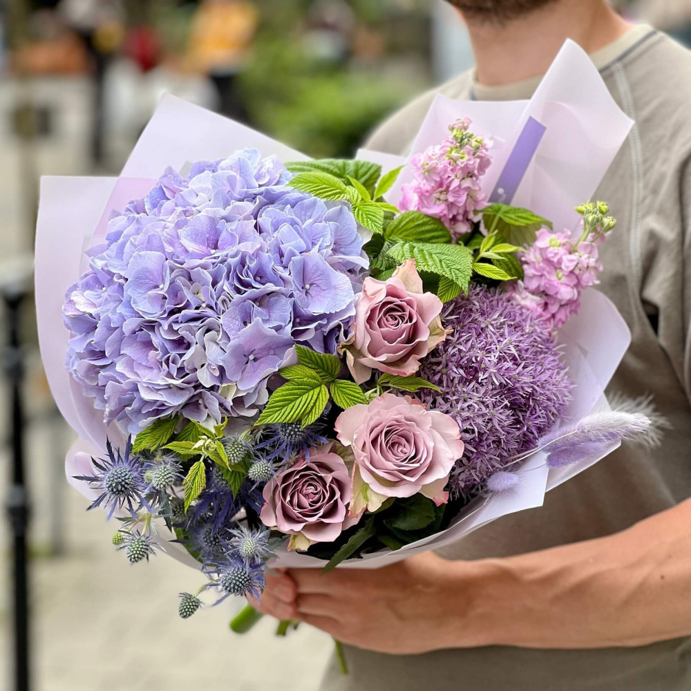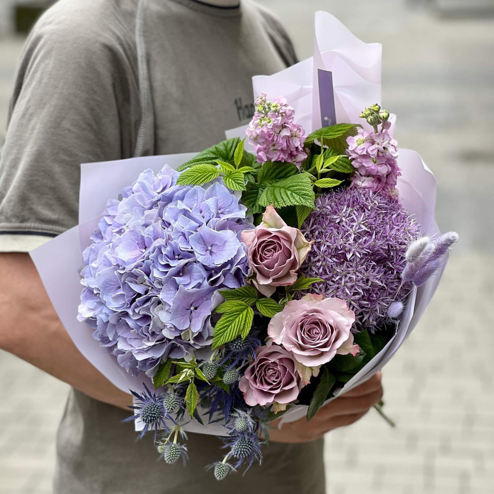 Квіти: Гортензія, Алліум, Троянда, Матіола, Лагурус, Малина