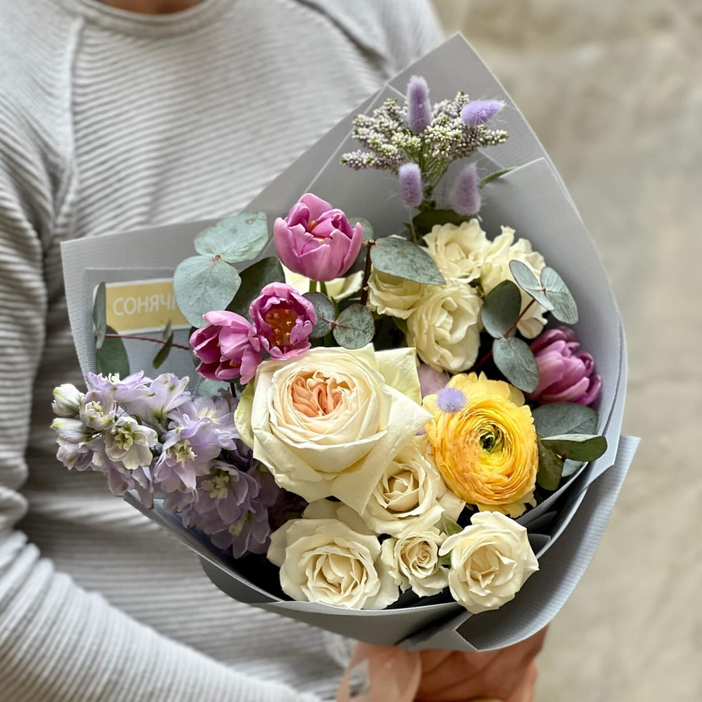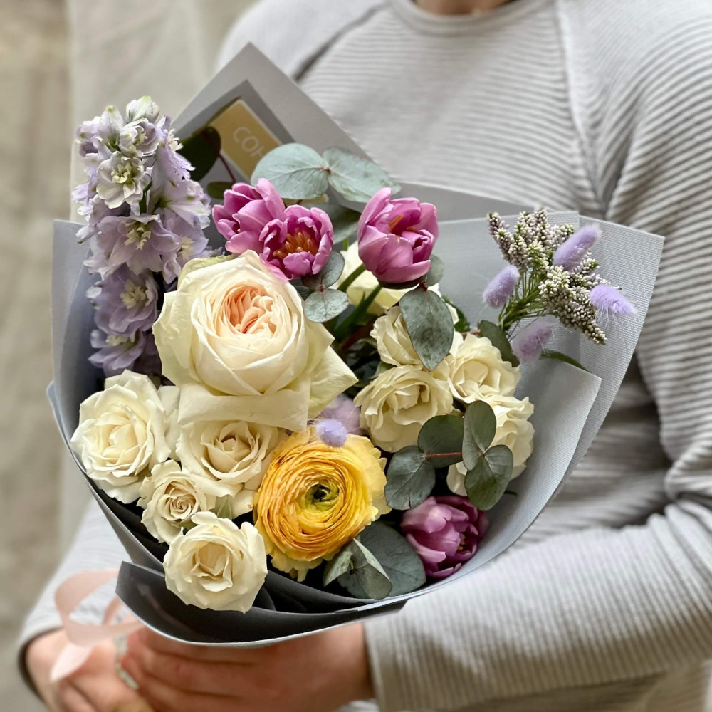 Квіти: Троянда, Дельфініум, Тюльпан, Ранункулюс, Евкаліпт