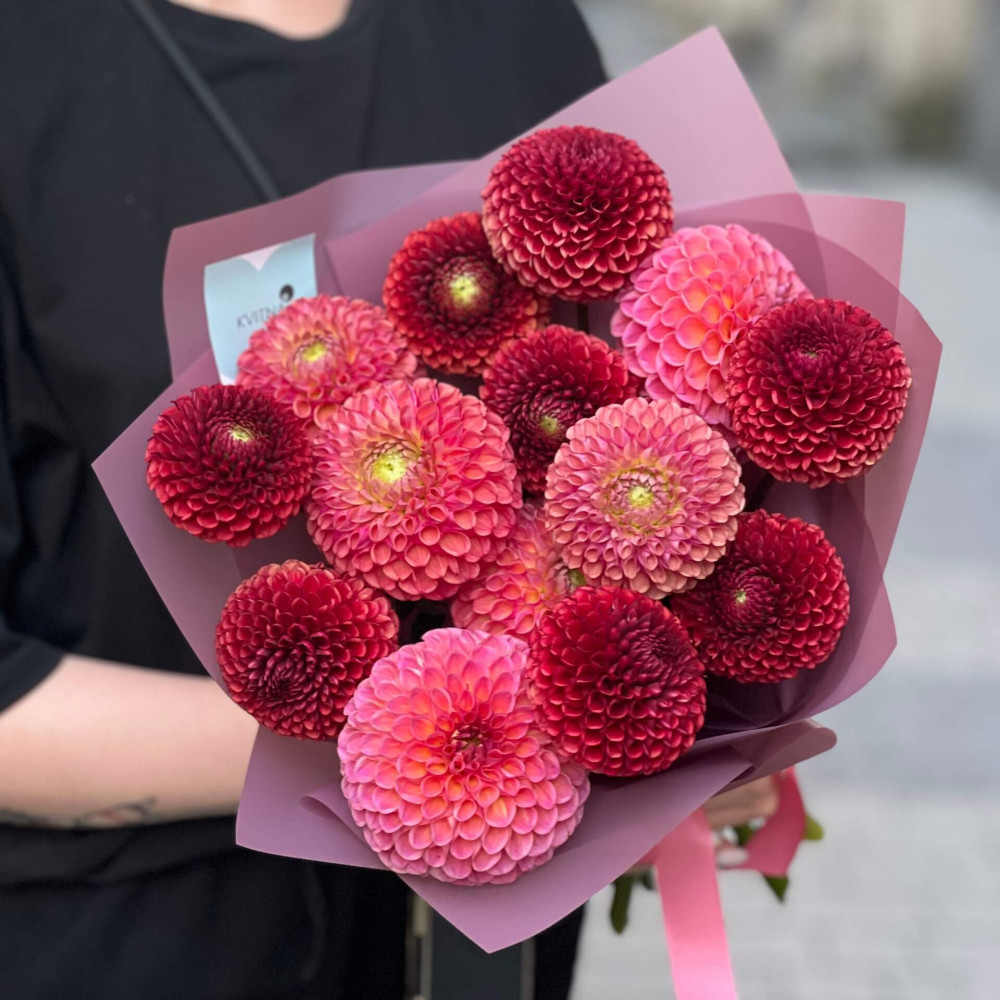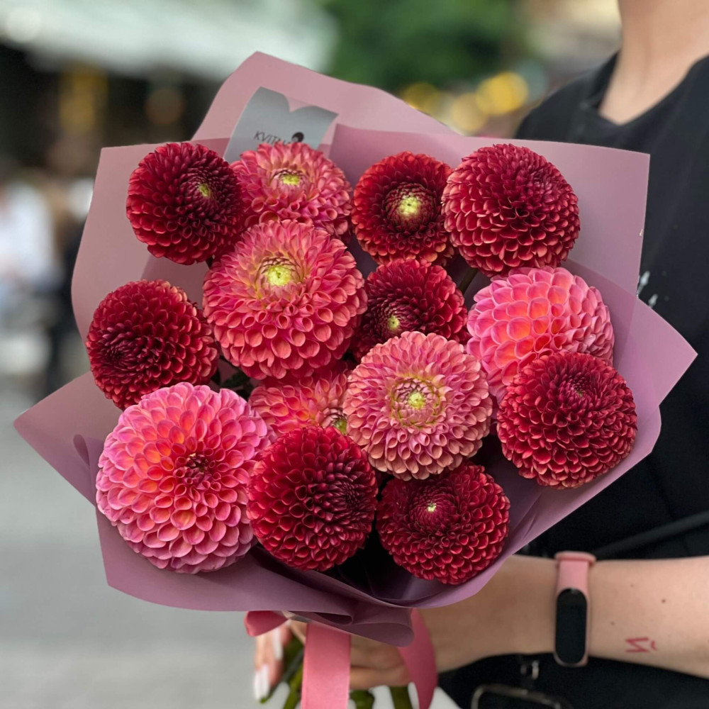 - Як замовити Букет із 15 жоржин у теракотових відтінках «Літній Фрамбуазьє»? ❯