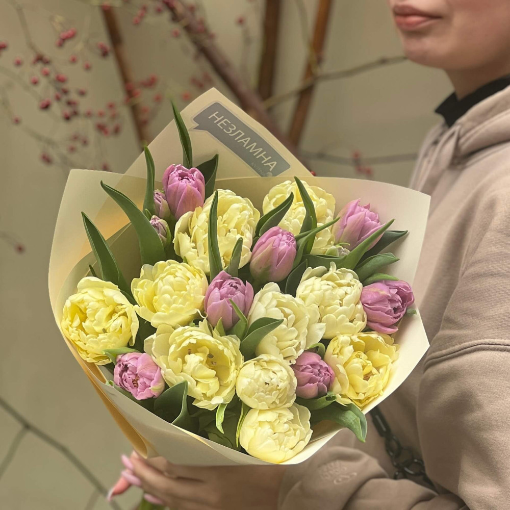 - Як замовити Букет із 17 піоновидних тюльпанів «Вершкова слива»? ❯