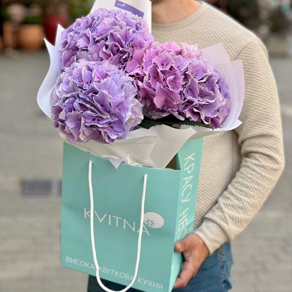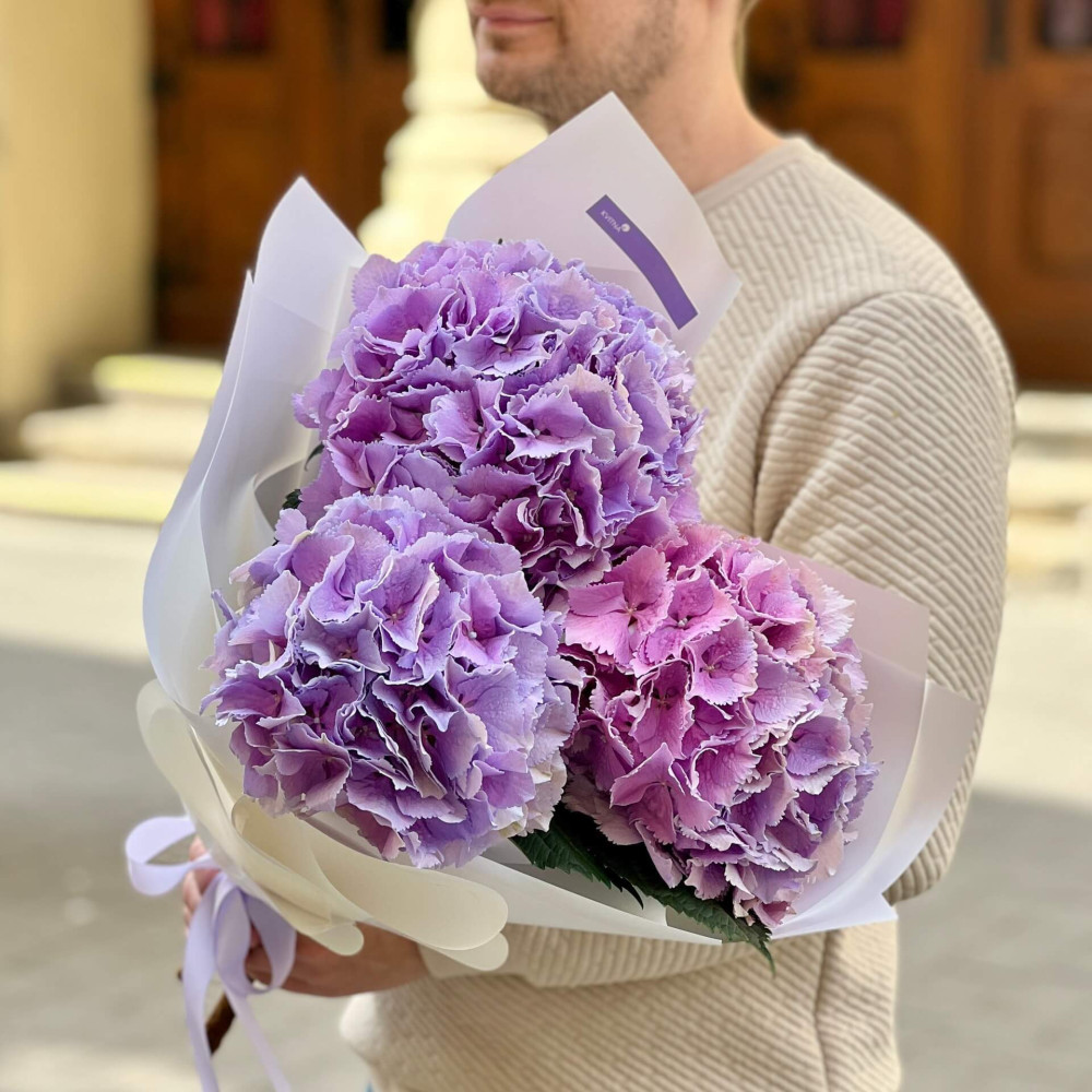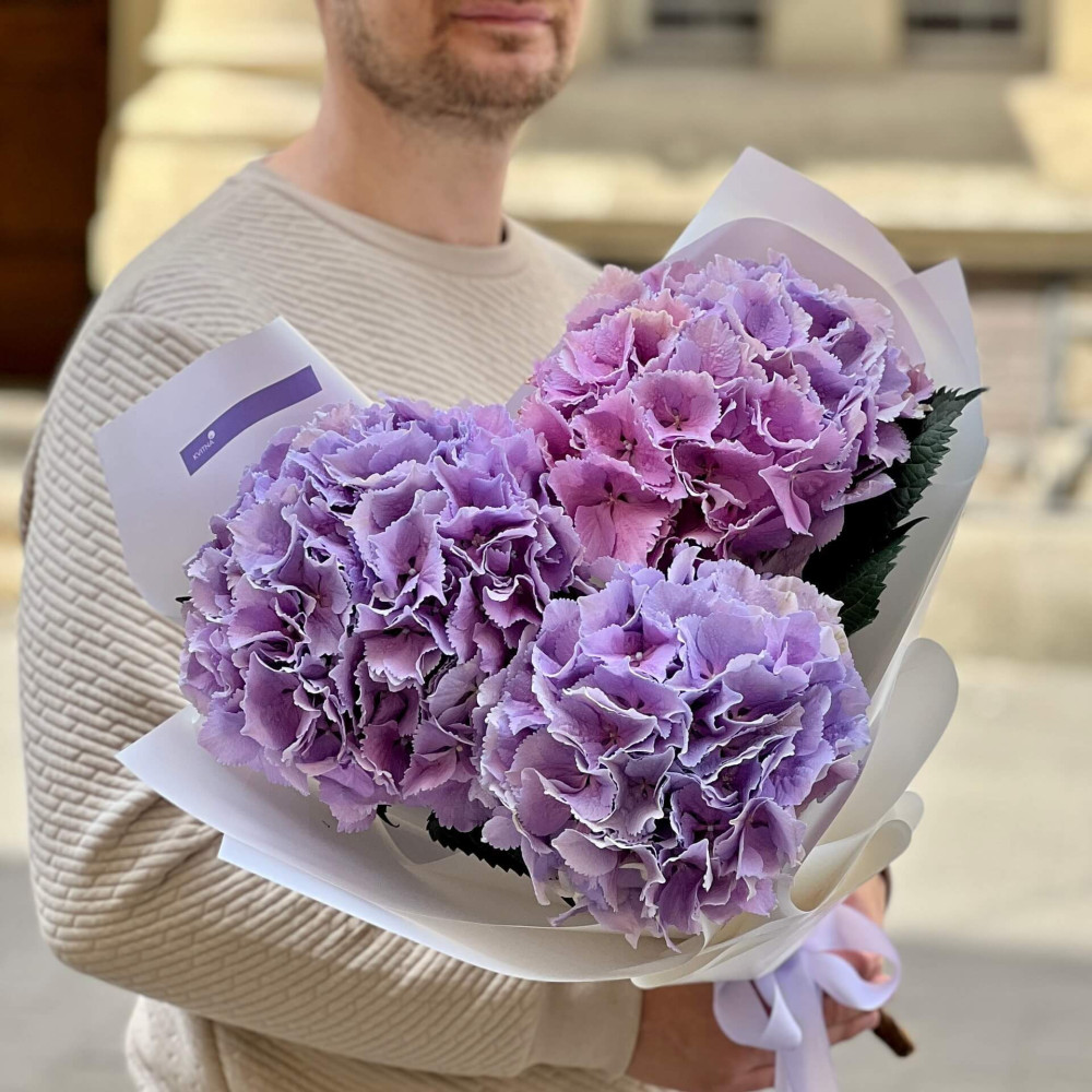 - Як замовити Букет із 3 бузкових гортензій «Лавандовий день»? ❯