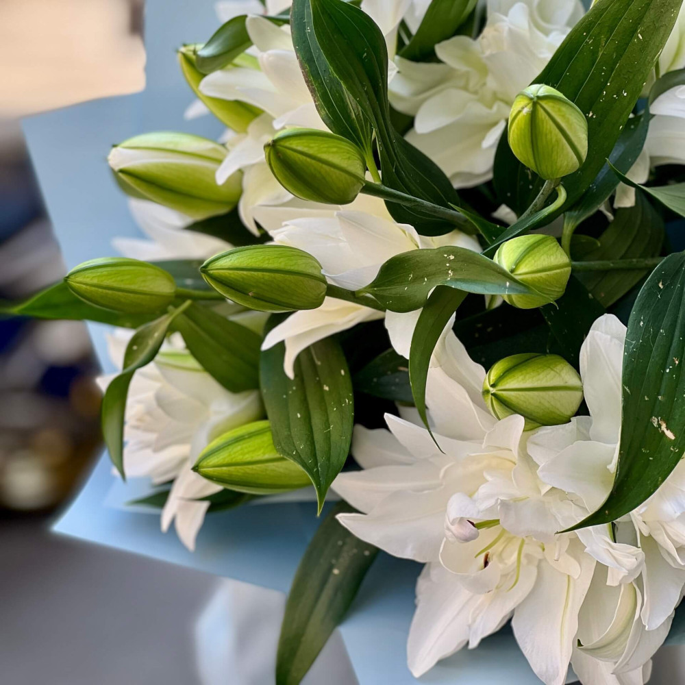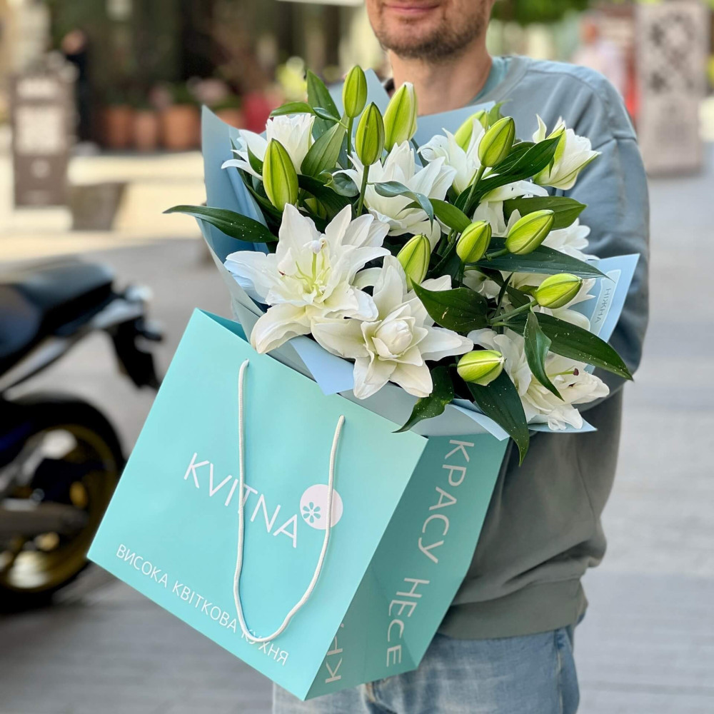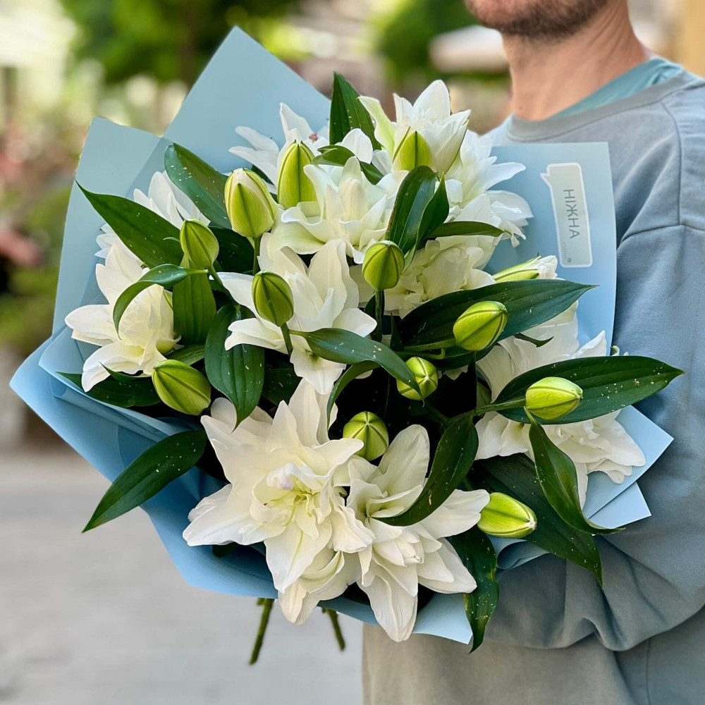 - Як замовити Букет із 5 піоновидних лілій «Сніжні зорі»? ❯