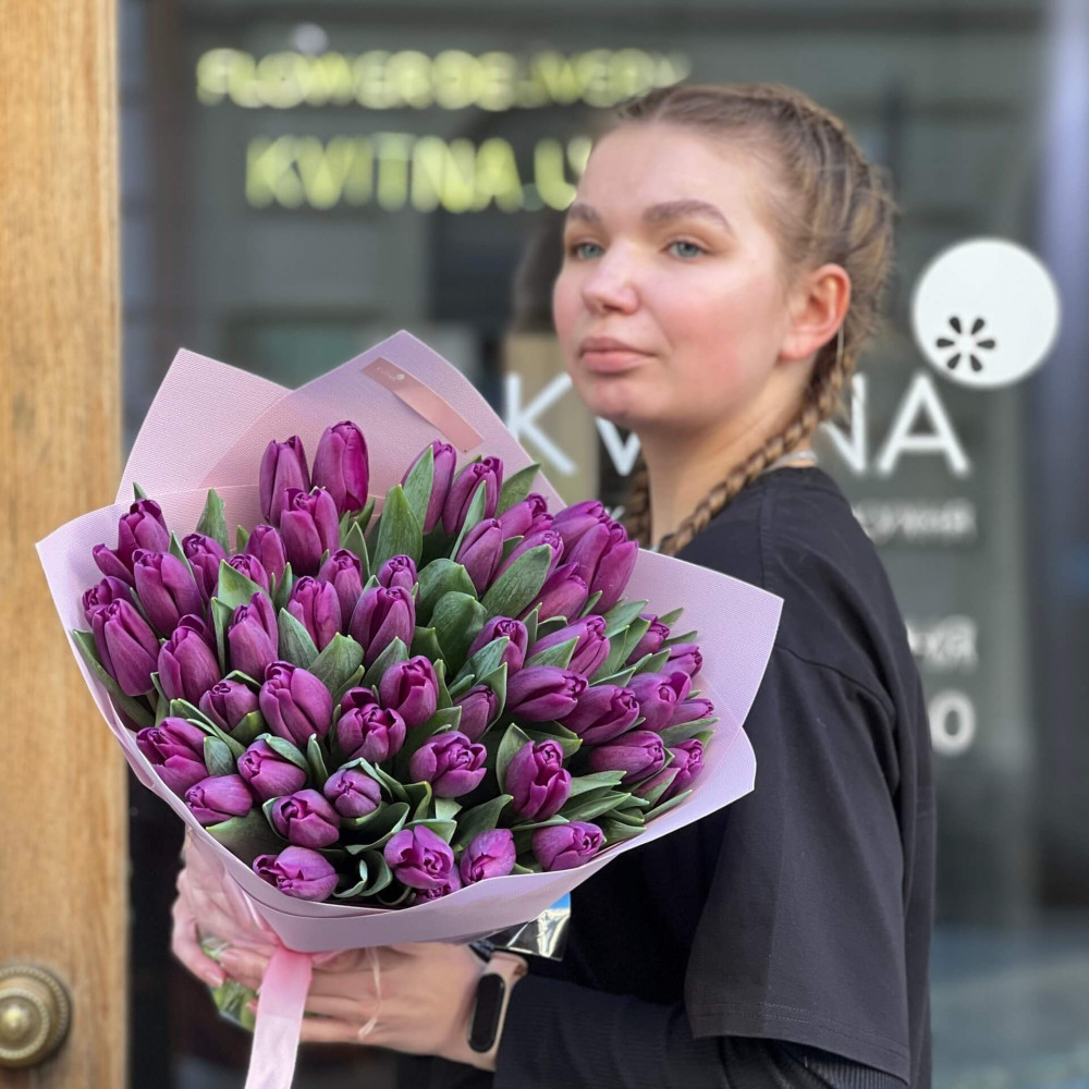 - Як замовити Букет із 51 класичного тюльпана «Поцілунок марсала»? ❯