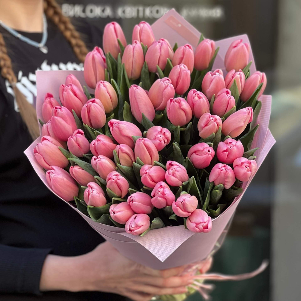 - Як замовити Букет із 51 класичного тюльпана «Рожева заграва»? ❯