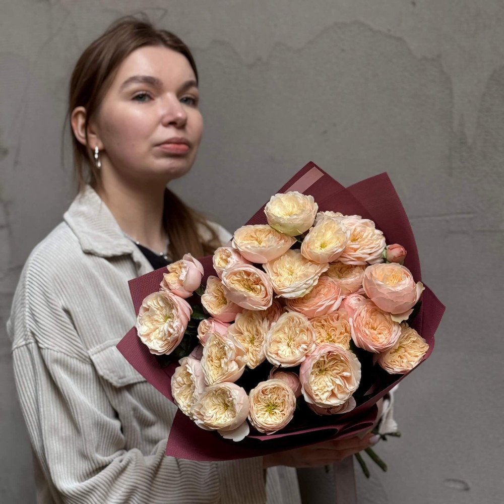 Квіти: Троянда піоновидна кущова сорту Darlington, 9 гілок