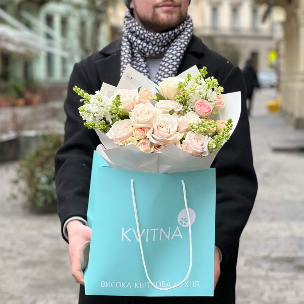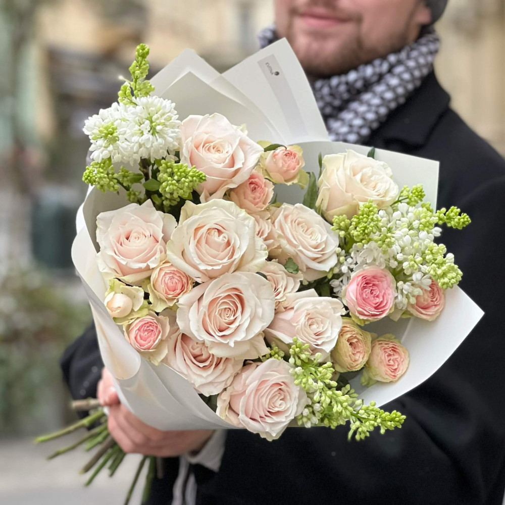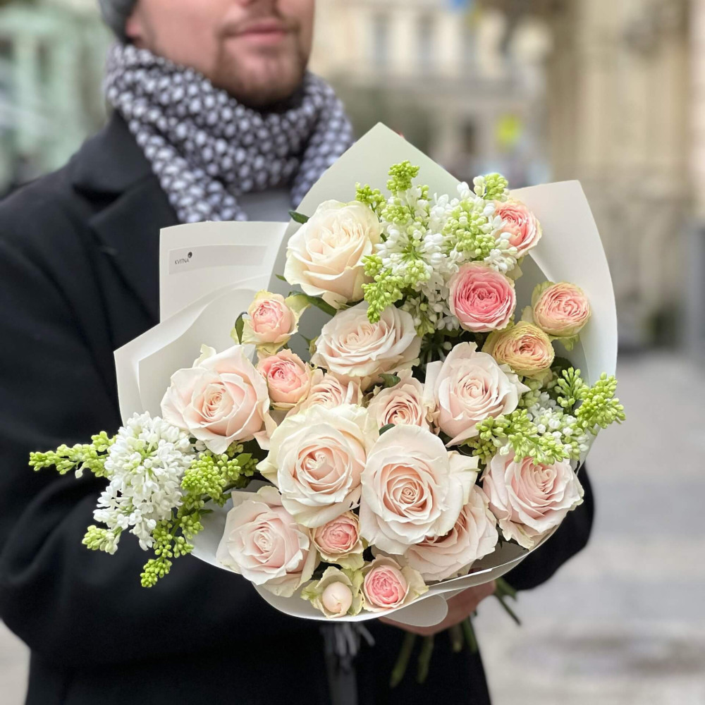 - Як замовити Букет із запашним бузком та тендітними трояндами «Ніжний танець»? ❯