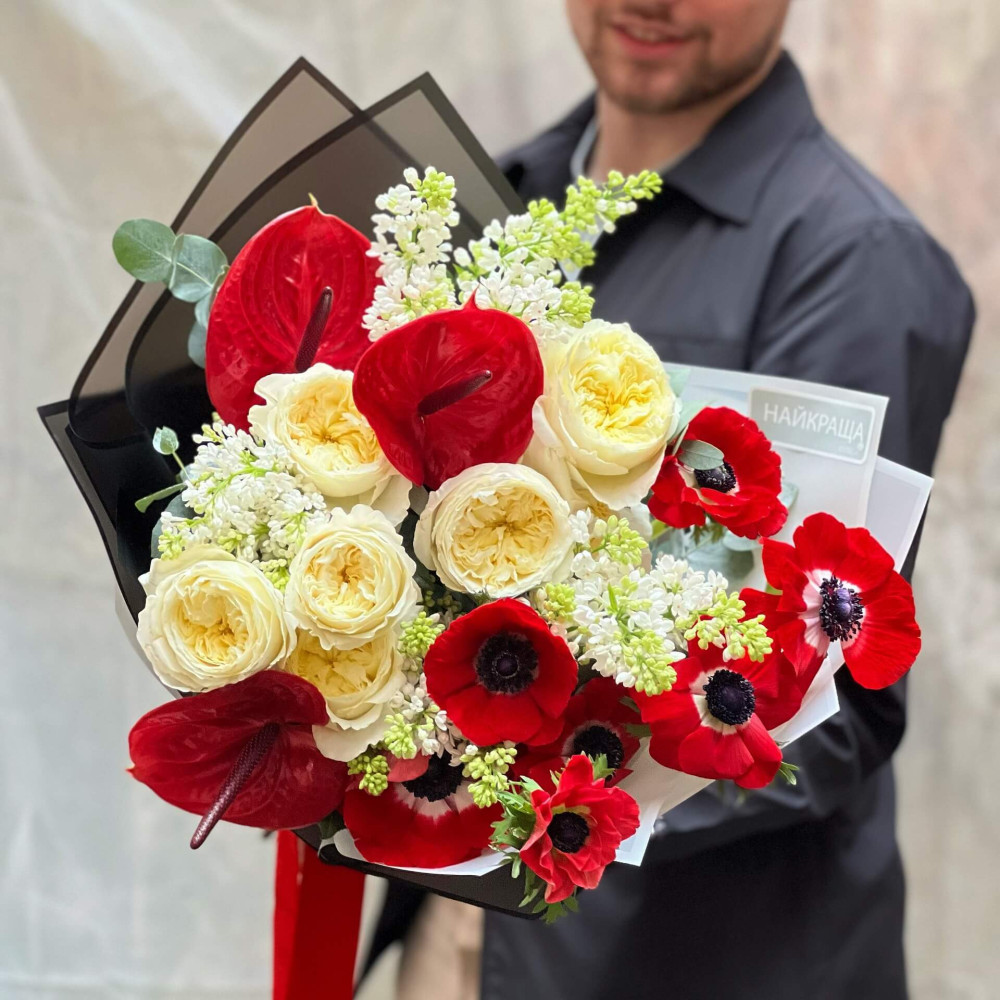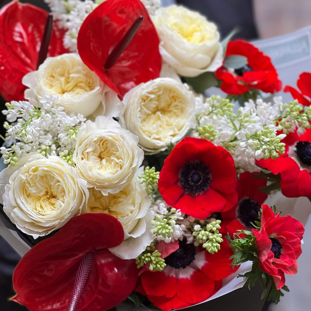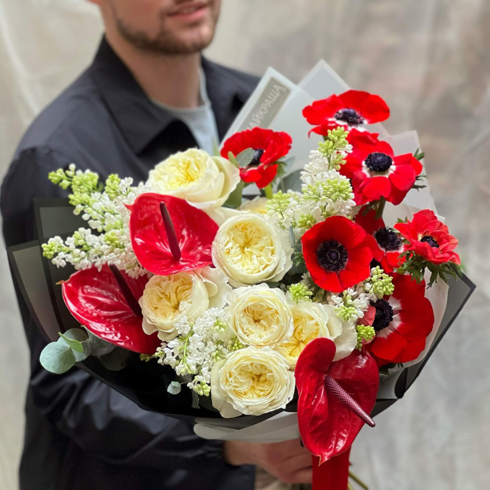 Квіти: Троянда Девіда Остіна, Бузок, Антуріум, Анемон, Евкаліпт