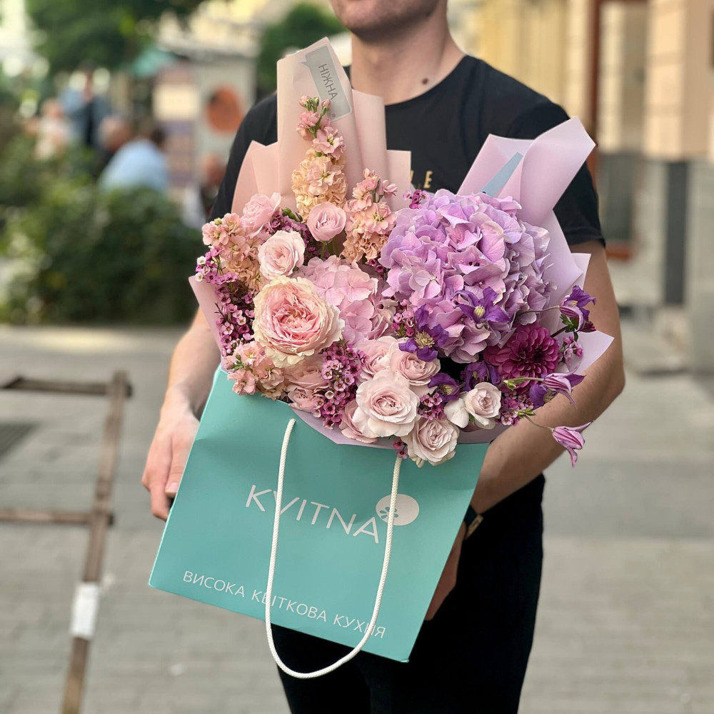 - Букети від Kvitna доставляються у фірмовому пакуванні, яке потрібно зняти при установці квітів у вазу. Не зрізайте стрічку, звʼязуючу букет, щоб зберегти його форму.