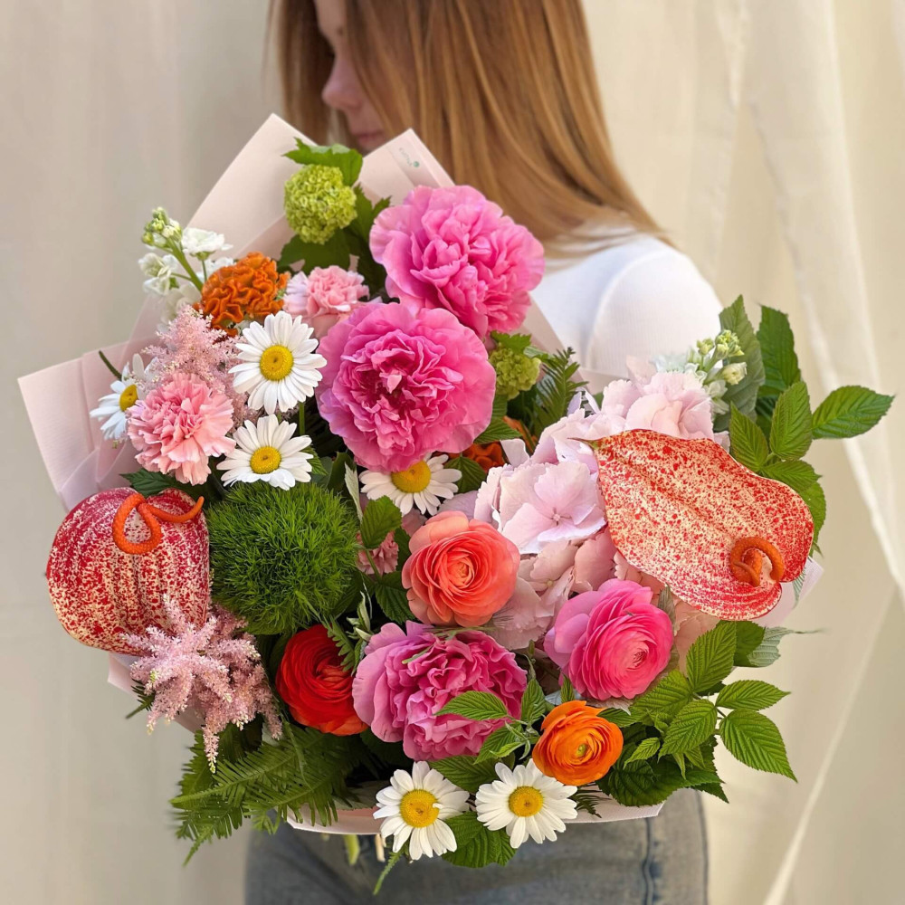 Квіти: Півонія, Антуріум, Гортензія, Ранункулюс, Танацетум, Діантус, Астільба, Целозія, Амбрела, Вібурнум, Матіола