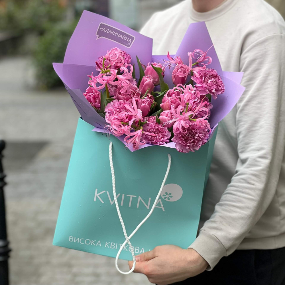 І це, до речі, зовсім не обов'язково плюси, це особливості, які потрібно розуміти. Тоді і вибір «де купити букет у Львові» зробити буде значно простіше.- Кожен букет Kvitna унікальний. Це означає, якщо Ви замовите у нас якийсь із букетів на сайті, то Ви не отримаєте точнісінько такий же. Деяких це бентежить, такі люди не хочуть «ризикувати», бажають «в точності, як на світлині». У «Квітна» кожен букет — це творчий пошук, це захоплення, злиття з квітами, образом одержувача і завданням. Так, ми можемо прийняти за вектор, зробити схожий букет, в тому ж стилі, кольоровій гамі, з тих самих квітів ... Але нам нудно робити за шаблоном. Адже букет, представлений на зображенні, робився для іншої людини, з іншого приводу, під інший настрій і натхнення. У Вас буде все по-іншому.