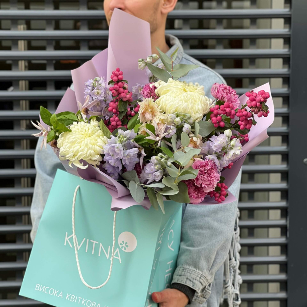 І це, до речі, зовсім не обов'язково плюси, це особливості, які потрібно розуміти. Тоді і вибір «де купити букет у Львові» зробити буде значно простіше.- Кожен букет Kvitna унікальний. Це означає, якщо Ви замовите у нас якийсь із букетів на сайті, то Ви не отримаєте точнісінько такий же. Деяких це бентежить, такі люди не хочуть «ризикувати», бажають «в точності, як на світлині». У «Квітна» кожен букет — це творчий пошук, це захоплення, злиття з квітами, образом одержувача і завданням. Так, ми можемо прийняти за вектор, зробити схожий букет, в тому ж стилі, кольоровій гамі, з тих самих квітів ... Але нам нудно робити за шаблоном. Адже букет, представлений на зображенні, робився для іншої людини, з іншого приводу, під інший настрій і натхнення. У Вас буде все по-іншому.