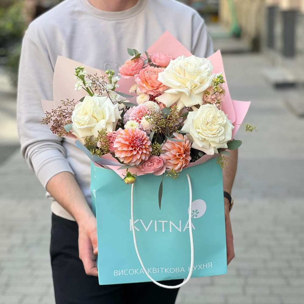 І це, до речі, зовсім не обов'язково плюси, це особливості, які потрібно розуміти. Тоді і вибір «де купити букет у Львові» зробити буде значно простіше.- Кожен букет Kvitna унікальний. Це означає, якщо Ви замовите у нас якийсь із букетів на сайті, то Ви не отримаєте точнісінько такий же. Деяких це бентежить, такі люди не хочуть «ризикувати», бажають «в точності, як на світлині». У «Квітна» кожен букет — це творчий пошук, це захоплення, злиття з квітами, образом одержувача і завданням. Так, ми можемо прийняти за вектор, зробити схожий букет, в тому ж стилі, кольоровій гамі, з тих самих квітів ... Але нам нудно робити за шаблоном. Адже букет, представлений на зображенні, робився для іншої людини, з іншого приводу, під інший настрій і натхнення. У Вас буде все по-іншому.