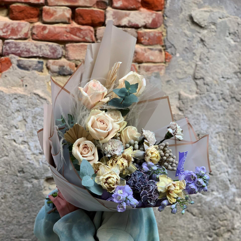 Залежно від сезонності і наявності квітів ми залишаємо за собою право змінювати склад букета без повідомлення замовника, зберігаючи при цьому авторський стиль, колірне рішення, концепцію букета. У разі, якщо необхідна заміна базової квітки, заміна відбувається з узгодженням із замовником. Якщо для Вас критично важлива присутність в складі певної квіточки – обов'язково зв'яжіться з нами та повідомте про це.