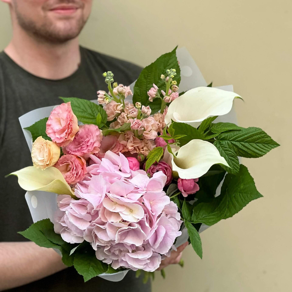 Квіти: Гортензія, Еустома, Зантедескія, Троянда кущова, Матіола, Малина