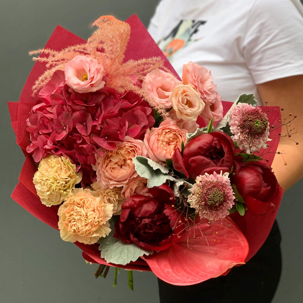 Квіти: Гортензія, Міскантус, Діантус, Антуріум, Сенеціо, Еустома, Скабіоза, Троянда піоновидна, Півонія