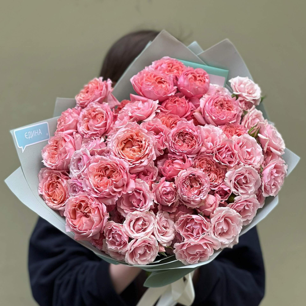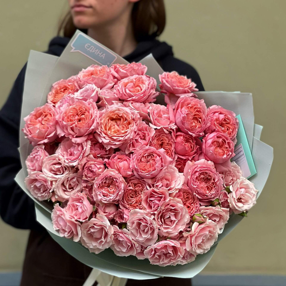 - Як замовити 15 гілок кущової піоновидної троянди у букеті «Мереживні троянди»? ❯